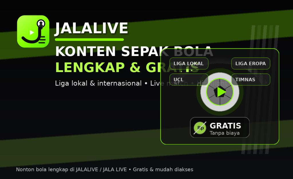 Bagi pecinta sepak bola, apa yang lebih menyenangkan daripada menonton laga tim favorit secara gratis dan tanpa gangguan? Inilah yang ditawarkan oleh JALALIVE. JALALIVE (juga dikenal sebagai Jala Live) adalah platform live streaming olahraga yang menyediakan siaran langsung berbagai pertandingan sepak bola dari liga-liga ternama, baik lokal maupun internasional. Layanan streaming ini resmi dan asli yang artinya, JALALIVE memang benar-benar ada dan beroperasi secara legal dengan dukungan lisensi hak siar yang sah. Platform ini memiliki situs web resmi sendiri, dan bahkan tersedia dalam bentuk aplikasi mobile di perangkat Android (Google Play Store) maupun iOS (App Store) untuk memudahkan akses pengguna. Sebagai pusat hiburan live olahraga tanpa batas sesuai slogannya, JALALIVE memungkinkan penggemar olahraga menikmati tayangan pertandingan favorit kapan saja tanpa batas, terutama bagi penggemar sepak bola yang menjadi fokus utamanya.